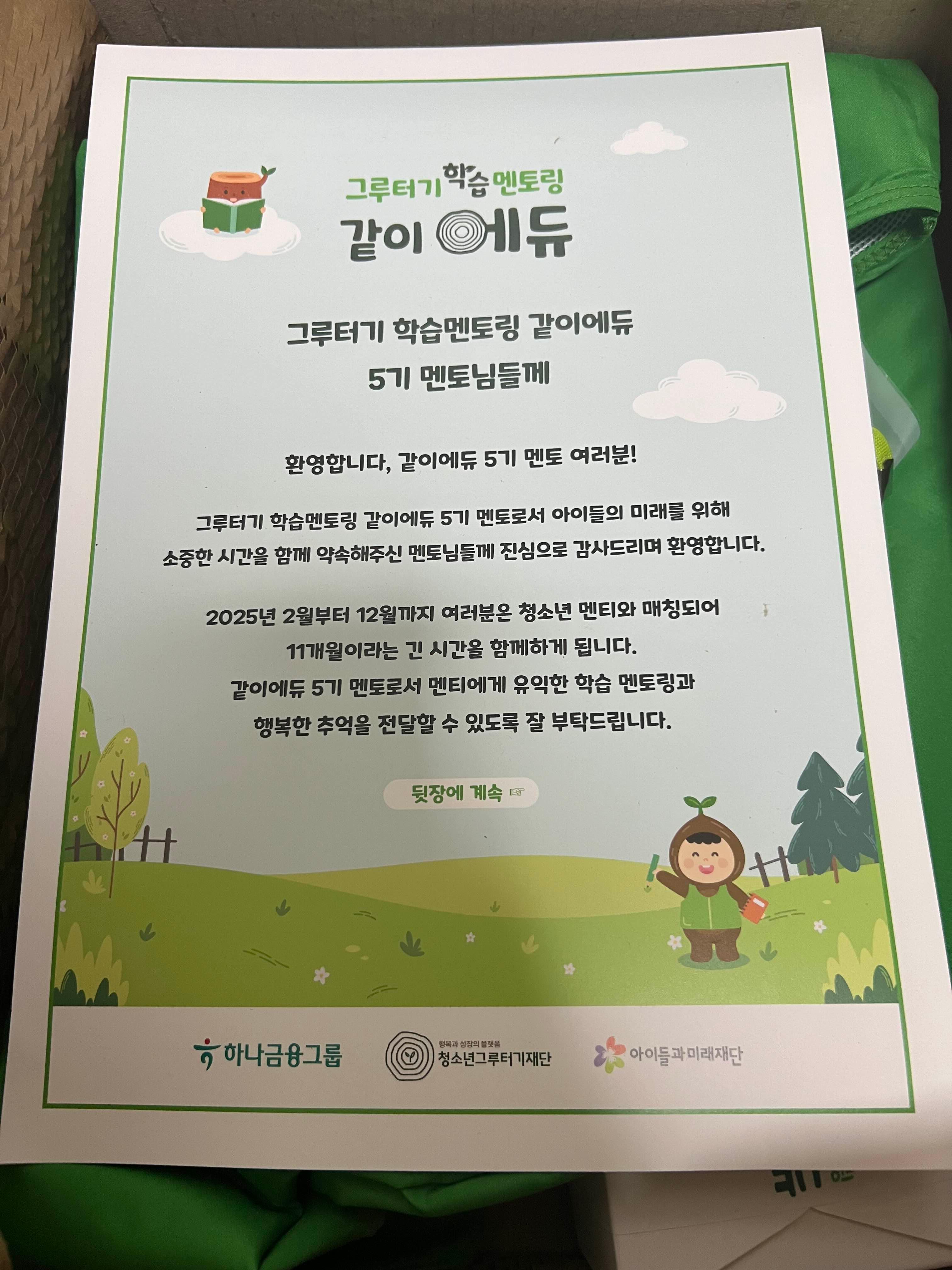 Kb라스쿨은 노란 조끼였는데 그루터기 같이 에듀는 초록초록 하네요🌲