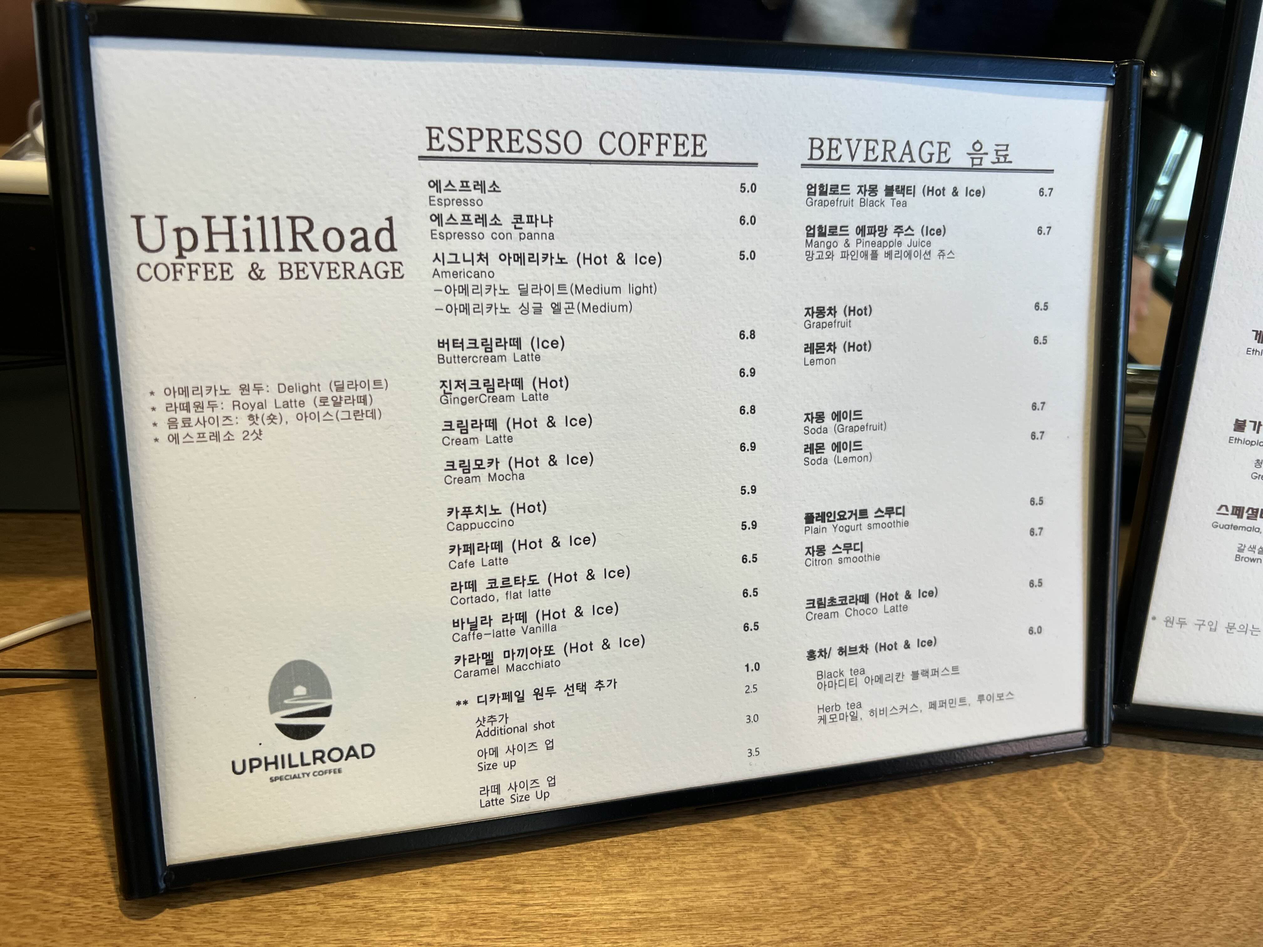 커피 값이 가격대가 있는데요. 디카페인 있구요. 흑설탕 맛이 납니다. 괜찮은 맛이 나네요.