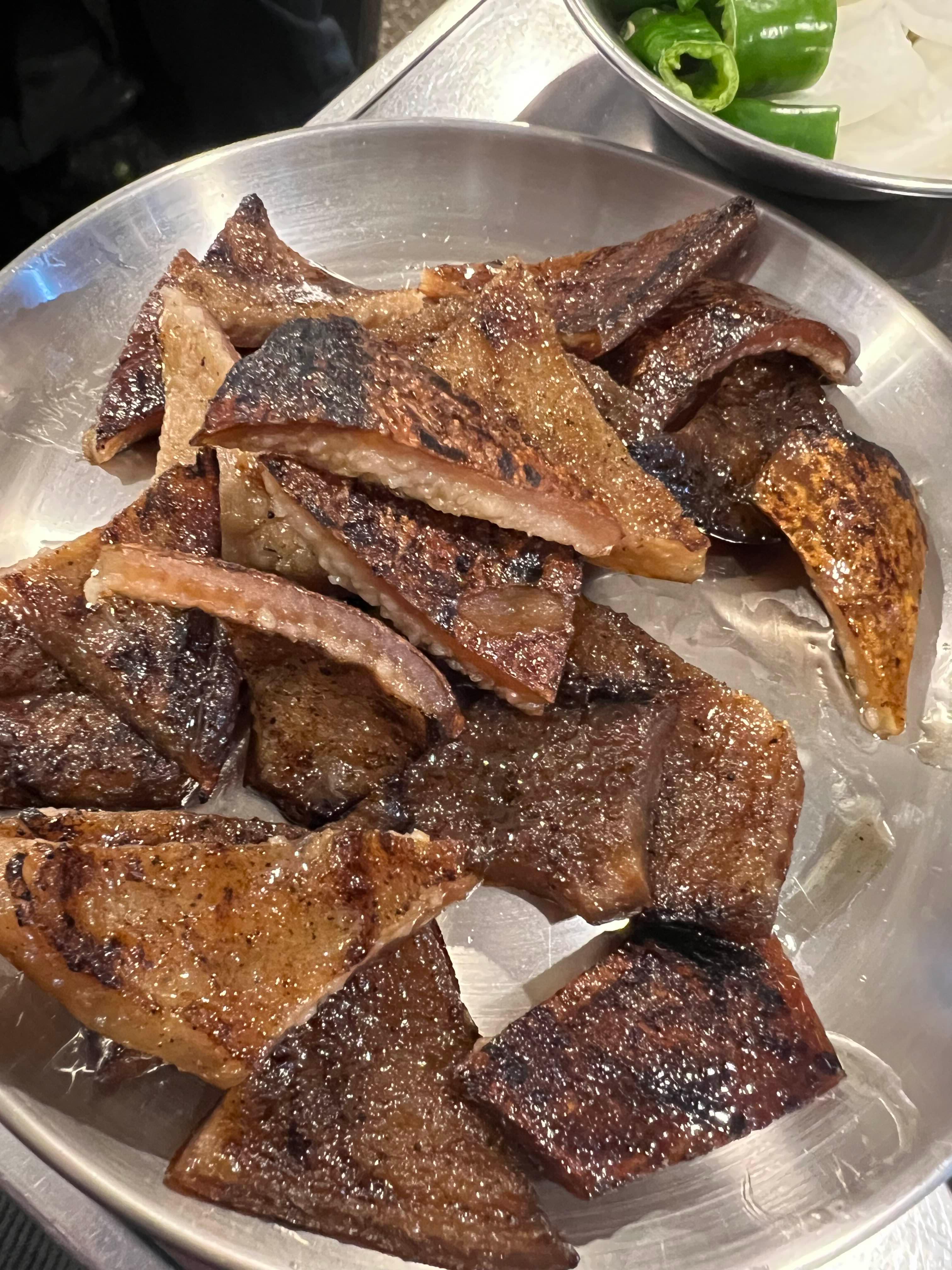 개인적으로는 고기가 껍데기보다 더 맛있었어요. 하지만 처음 방문하셨다면 둘 모두 드셔보세요:)
