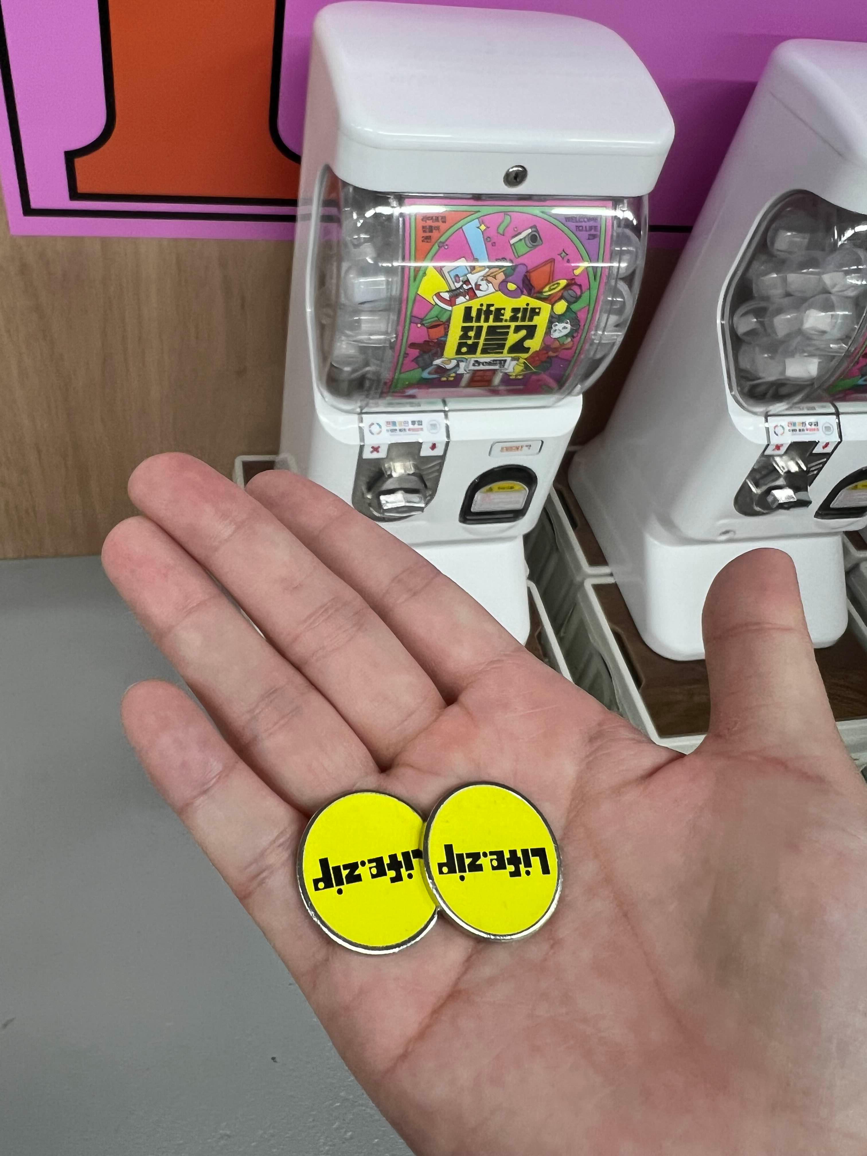 받은 코인 2개... 뽑기 운이 없는 저는 그냥 배지 받았습니다.. 제 친구는 2000원 gs편의점쿠폰 받았더라구요