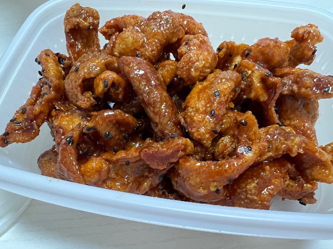 + 집에 포장해와서 저녁에 먹은!! 육림닭강정의 닭껍질강정!