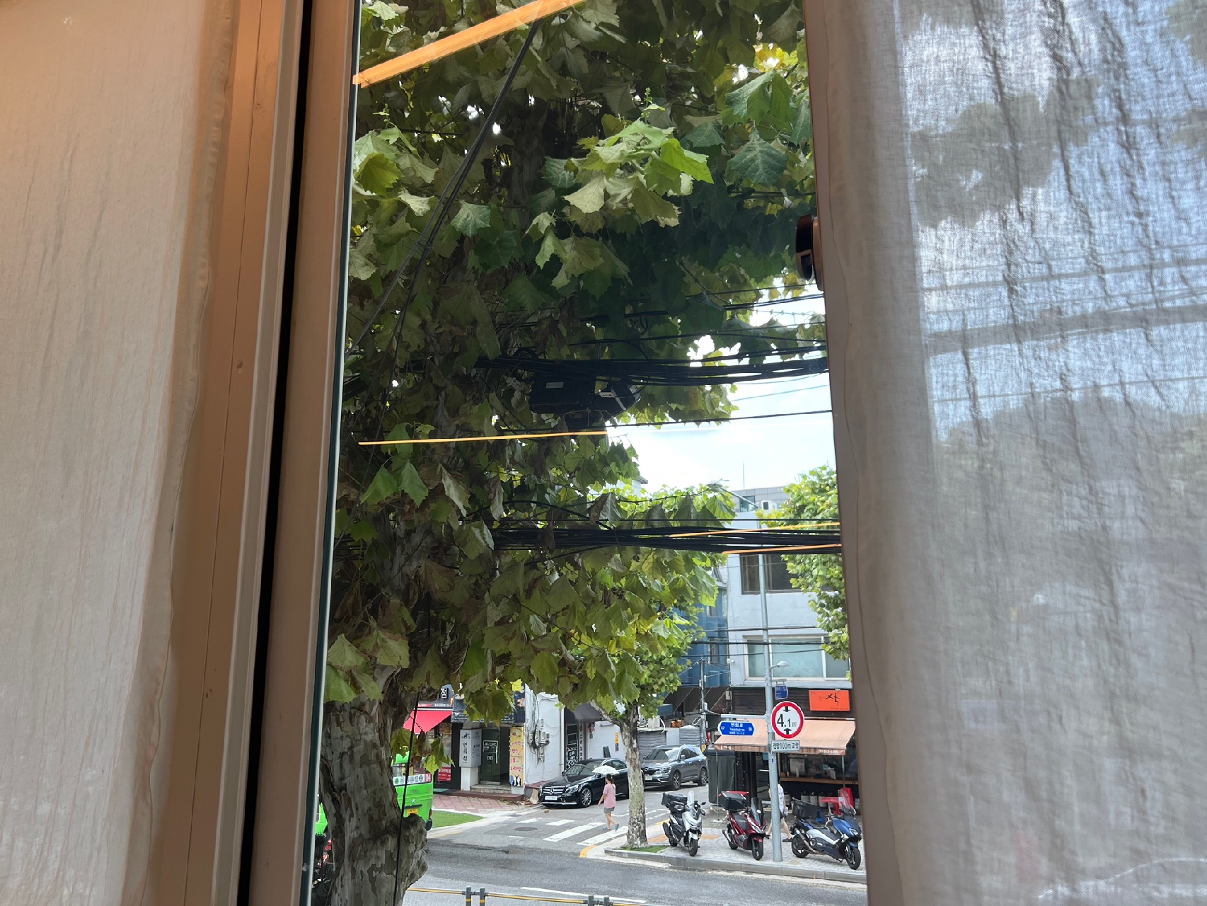 1. 유리창이 커서 나무들이 잘 보인다.