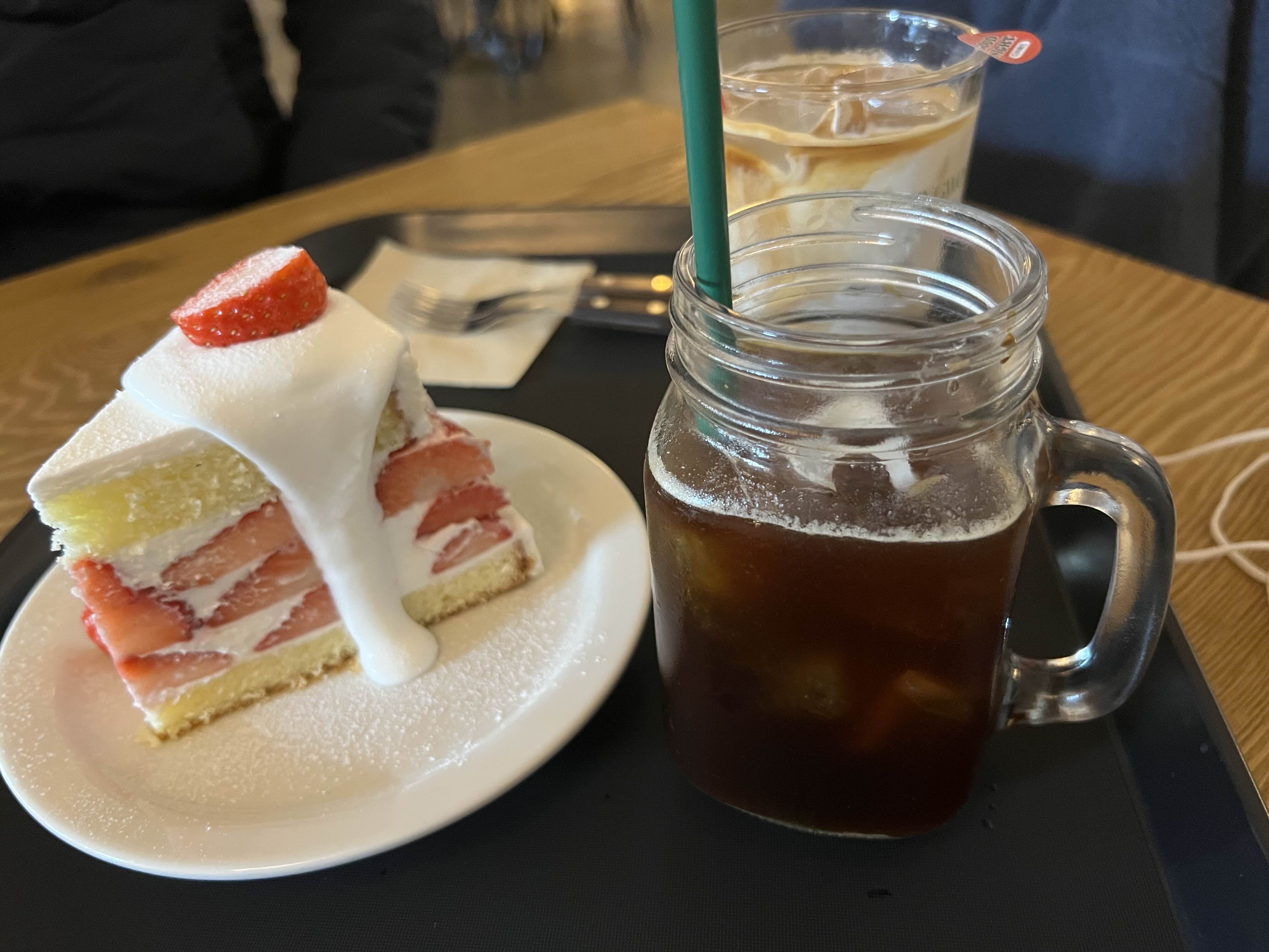딸기가 층층이 있어서 비싼 것 같았다. 다른 딸기 케이크에 비해 확실히 딸기양이 많다. 생크림도 부드럽고 달달했다. 그래도 12000원은 좀 비싼 감이 있다...
