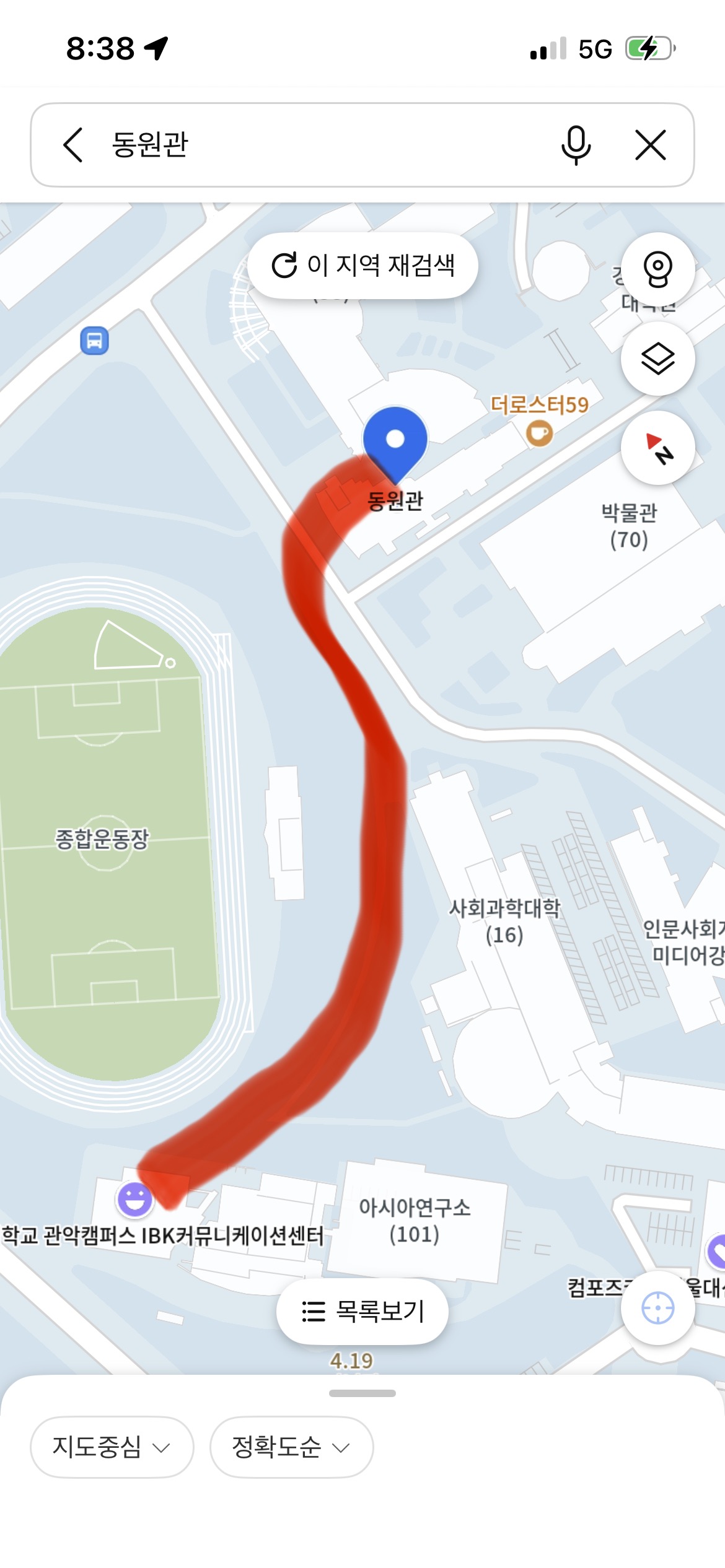요렇게 운동장을 기점으로 원을 돌듯 쭉 돌면 동원관 도착입니다!