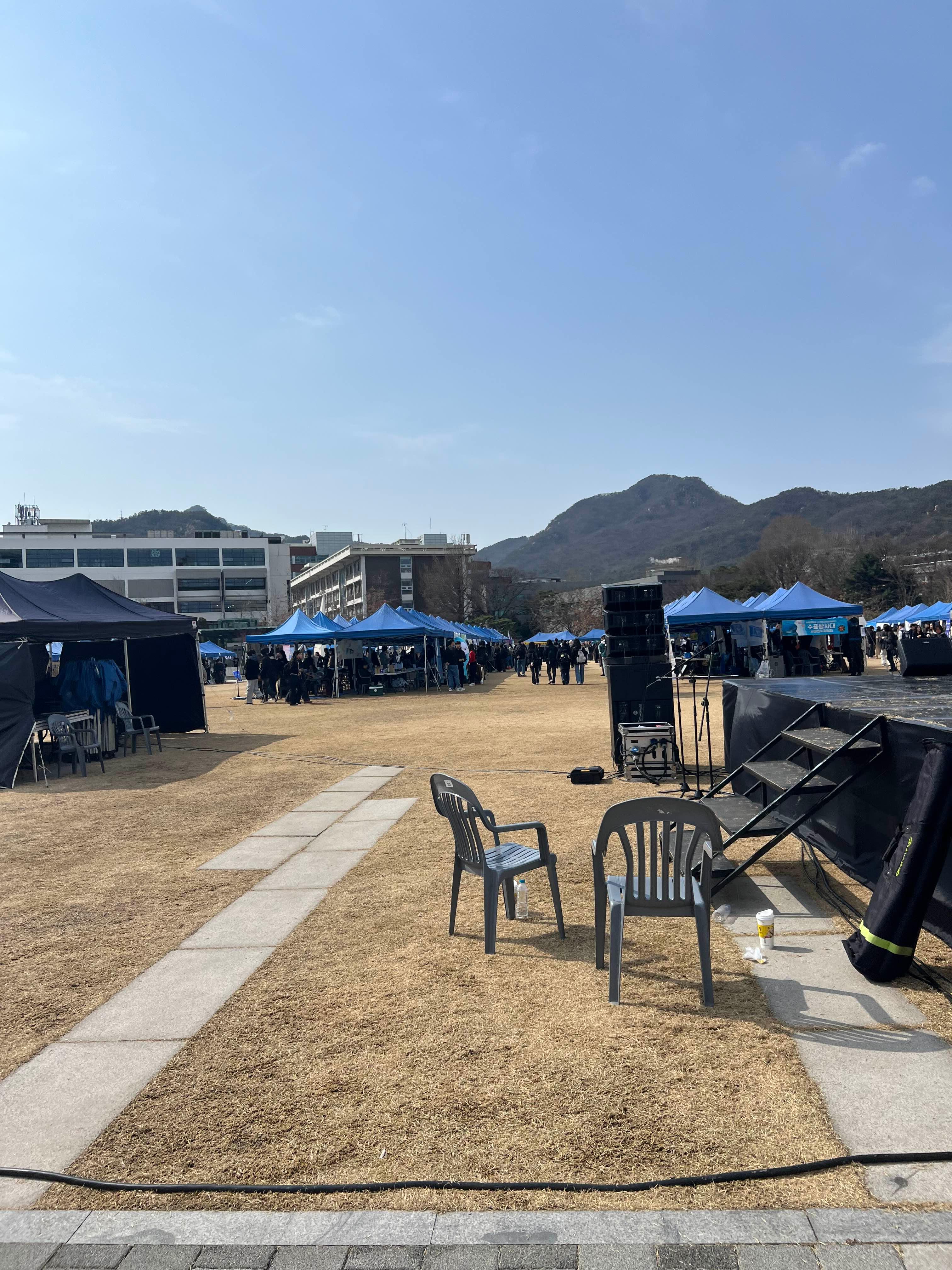 3월 초라 근처에서 이렇게 동아리 홍보하는 부스들이 많이 설치되어 있더라구요.