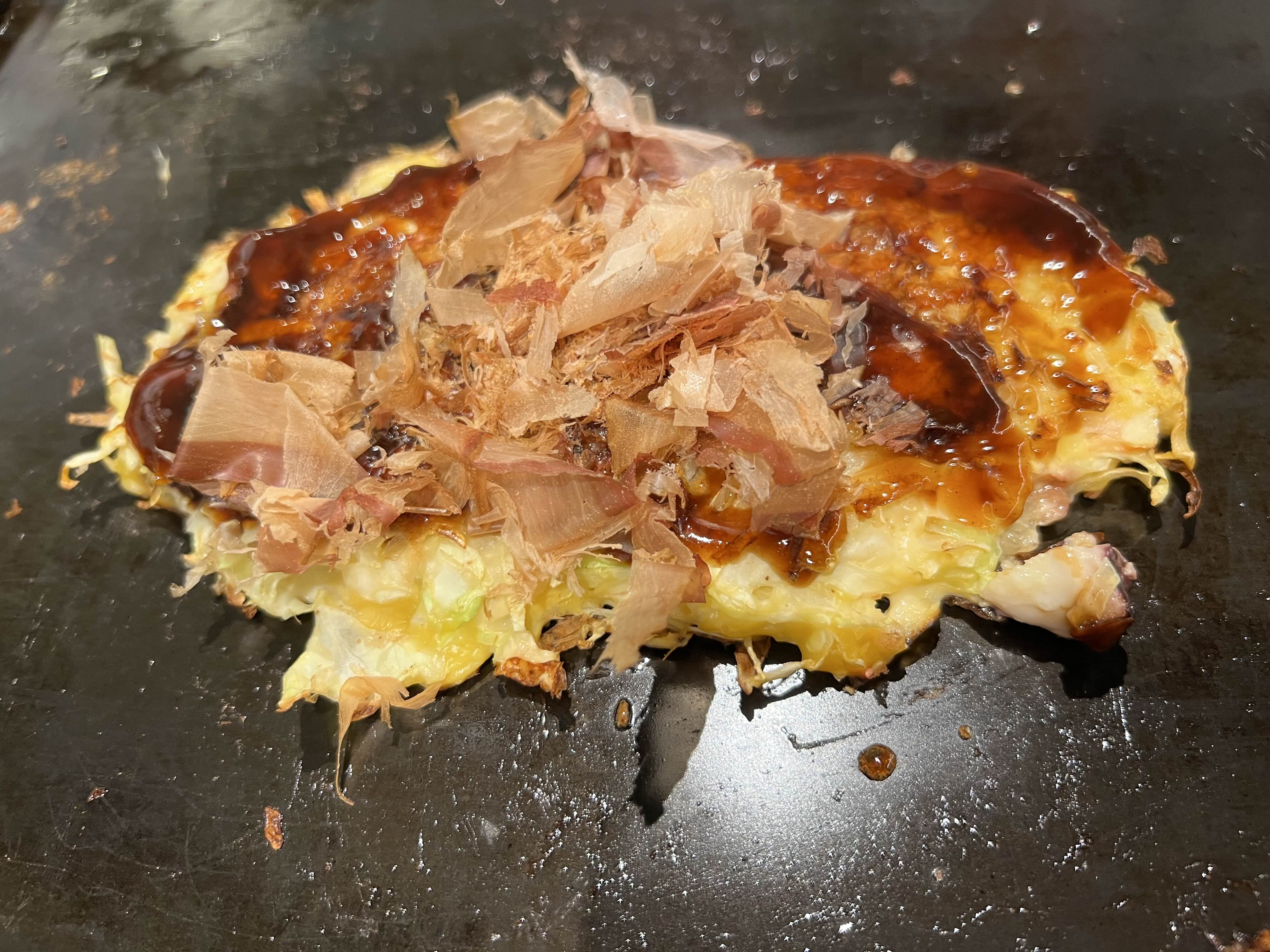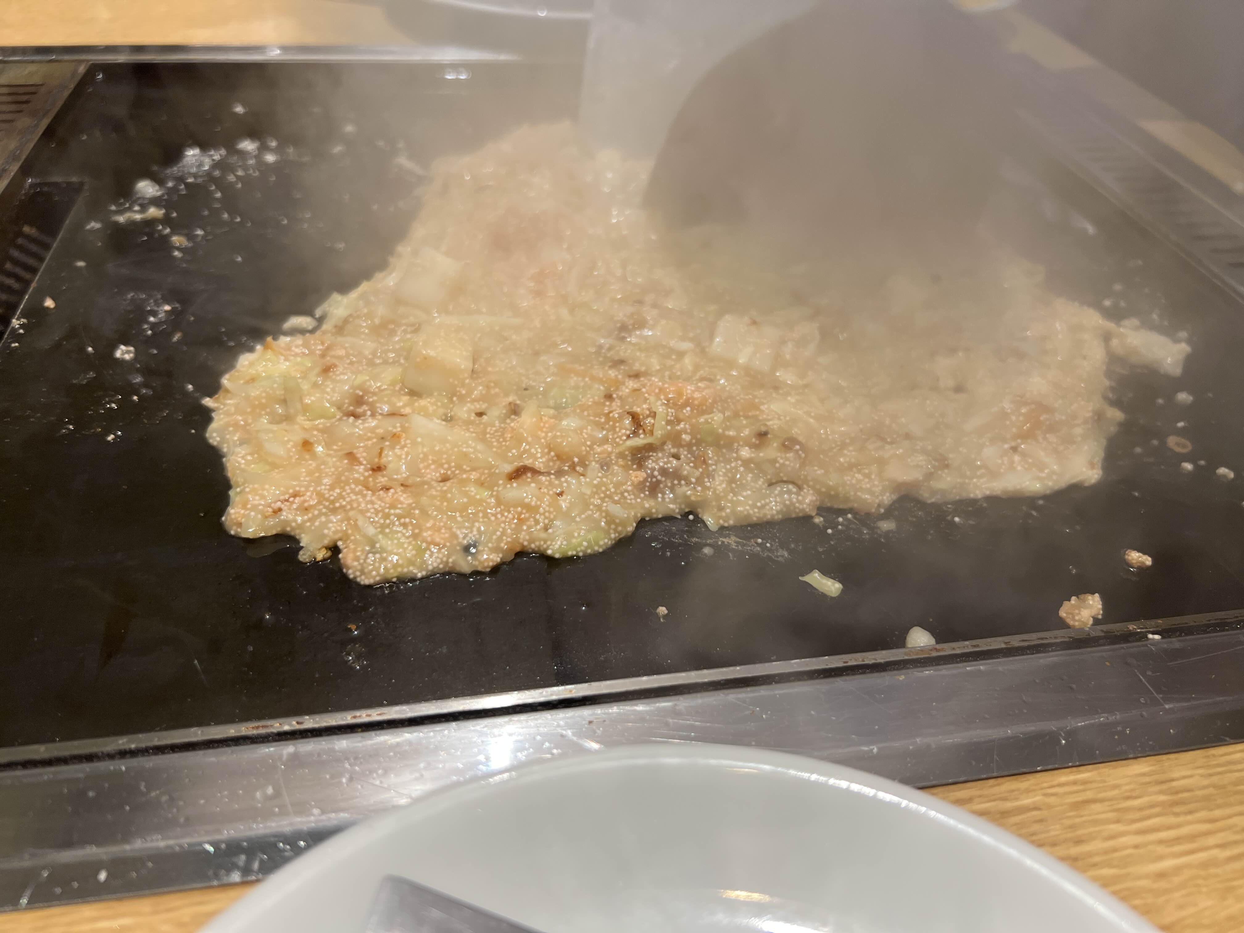 몬자야끼와 오코노미야키도 먹었구요. 몬자야끼는 뭐랄까 배가 안 차는데 쑥쑥 들어가는 맛! 맛있었어요. 꾹 눌러서 먹는 게 꿀맛
